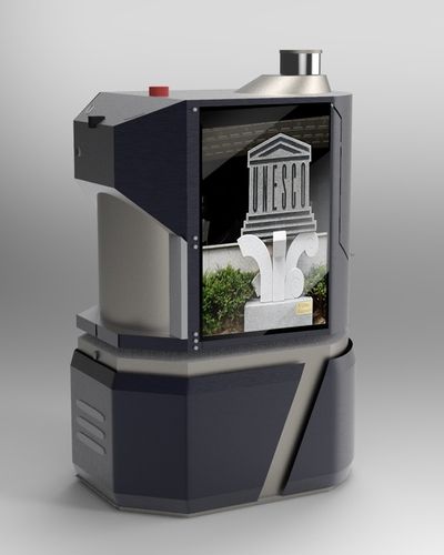실내 측위 라이다(LiDAR)가 장착된 이 로봇은 방문객의 발열과 실내 화재 감시를 포함해 위급상황을 AI 영상분석으로 실시간으로 파악한다.
