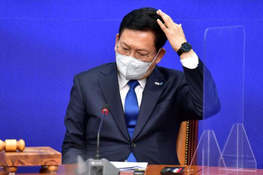 송영길 더불어민주당 대표가 17일 오전 국회에서 열린 최고위원회의에 참석하고 있다.(사진=연합뉴스) |