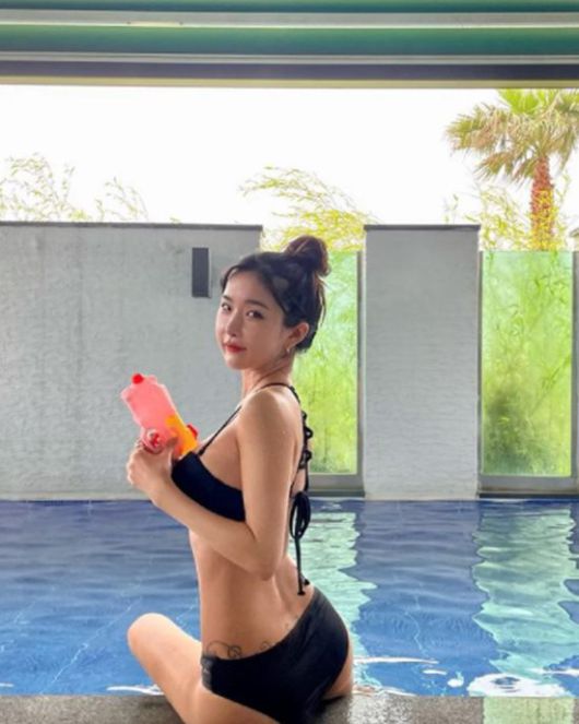 공개된 사진 속 조현영은 제주도의 한 풀빌라에서 시간을 보내고 있는 모습. 블랙 컬러의 비키니를 입은 조현영의 몸매가 시선을 강탈한다. 큼지막한 타투 역시 눈길을 사로잡는다.