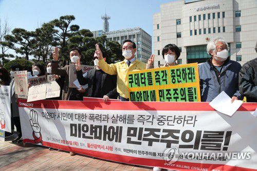 최민식 시 인권위 위원장은 "울산도 민주화를 위해 격렬하게 투쟁한 경험이 있고 지금의 민주주의가 군부와 맞서 싸운 희생의 대가임을 잘 알기에, 저항과 연대의 정신으로 미얀마를 계속 지지할 것"이라고 밝혔다.