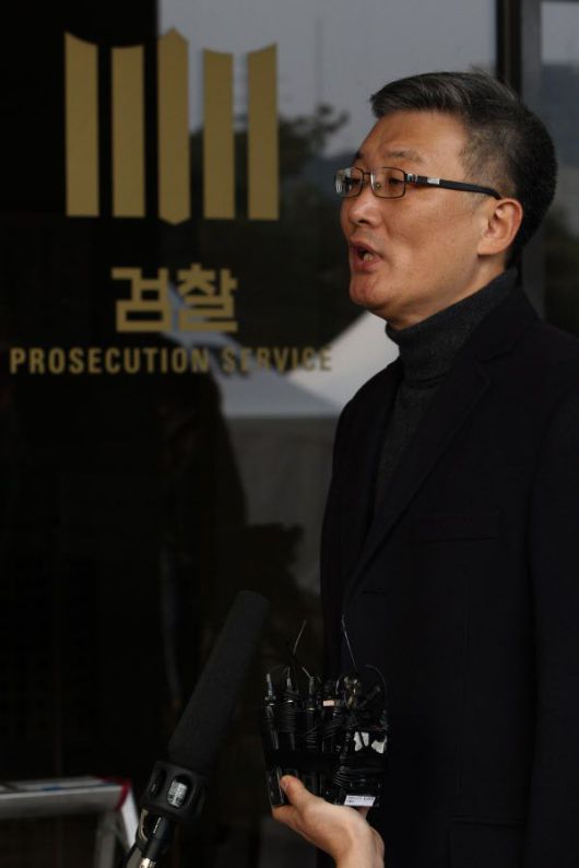 2016년 11월 27일 오후 차은택씨의 변호인 김종민 변호사가 서울중앙지법 앞에서 기자회견을 열고 있다. 김 변호사는 이날 취재진의 질문에 "차씨가 최순실의 지시로 김기춘 전 비서실장을 공관에서 만났다"고 답했다. |
