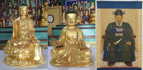 왼쪽부터 목조지장보살좌상, 목조아미타여래좌상, 정해일 초상 |