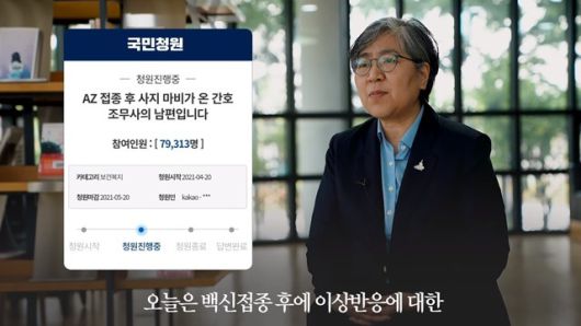 청와대 측 답변자로 나선 정은경 질병관리청장은 이날 답변 영상을 통해 "국민청원은 원래 20만 명 이상이 동의하면 답변을 드리는 거로 알고 있다"라면서도 "백신접종 후 이상반응에 대한 국민청원이 많이 올라왔는데, 아직은 20만 명을 충족하진 않았지만 국민들의 염려가 많고 불안감이 많아 우선적으로 이상반응 관련된 청원에 대해서 답변을 드리고자 한다"고 밝혔다.