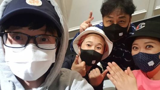 사진에는 20년도 더 된 코너에서 호흡을 맟춘 유재석과 송은이, 김숙, 김수용의 모습이 담겼다. 특히 유재석이 고기를 샀다고 해 눈길을 끈다.