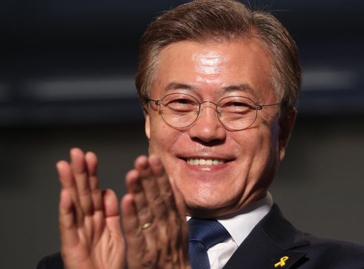 2017년 5월9일 당시 당선인 신분이던 문재인 대통령이 개표방송을 보며 활짝 웃고 있다. 연합뉴스 |