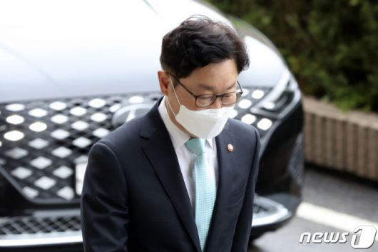 (과천=뉴스1) 이성철 기자 = 박범계 법무부 장관이 17일 오전 경기 과천시 정부과천청사 법무부로 출근하고 있다. 2021.5.17/뉴스1 |