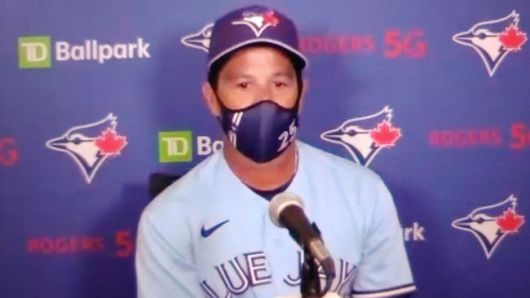 [사진]토론토의 찰리 몬토요 감독이 19일(한국시간) 보스턴과의 경기를 마친 뒤 화상 인터뷰르르 하고 있다. <토론토 블루제이스 구단 제공 영상 캡처> |