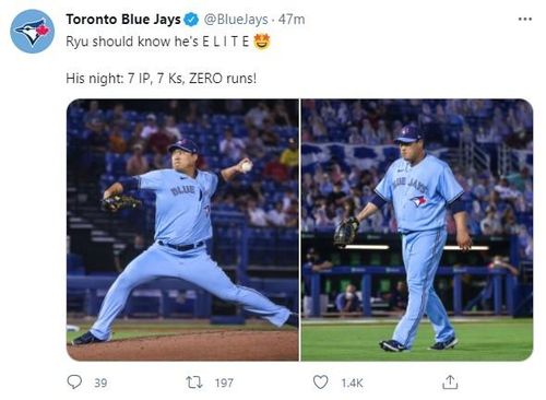 토론토는 류현진이 마운드를 내려온 뒤 구단 공식 트위터를 통해 "류현진은 자신이 엘리트라는 걸 알아야 한다"고 찬사를 보냈다.