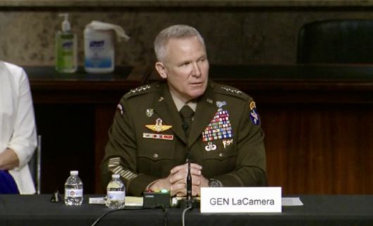 폴 라카메라 한미연합사령관 겸 주한미군사령관 지명자는 18일(현지시간) 상원 군사위원회의 인준 청문회에서 김정은 북한 국무위원장이 극단적 상황에서 핵무기를 사용할 수 있다고 경고했다./사진=인준 청문회 중계 캡처 |