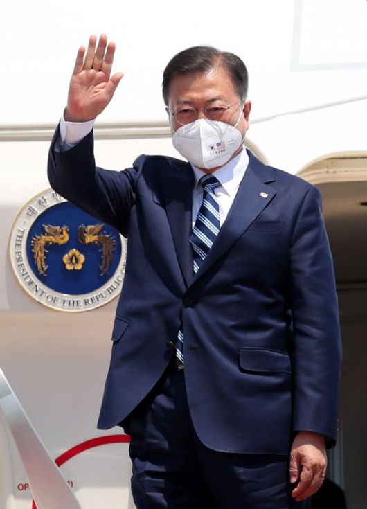 한편 문 대통령은 19일 오후 2시10분 앤드류스 기지에 도착했다. 이수혁 주미국 대사가 배웅을 나왔다. 문 대통령은 출국 당시와 같은 남색 정장에 줄무늬 넥타이 차림의 모습이었다.