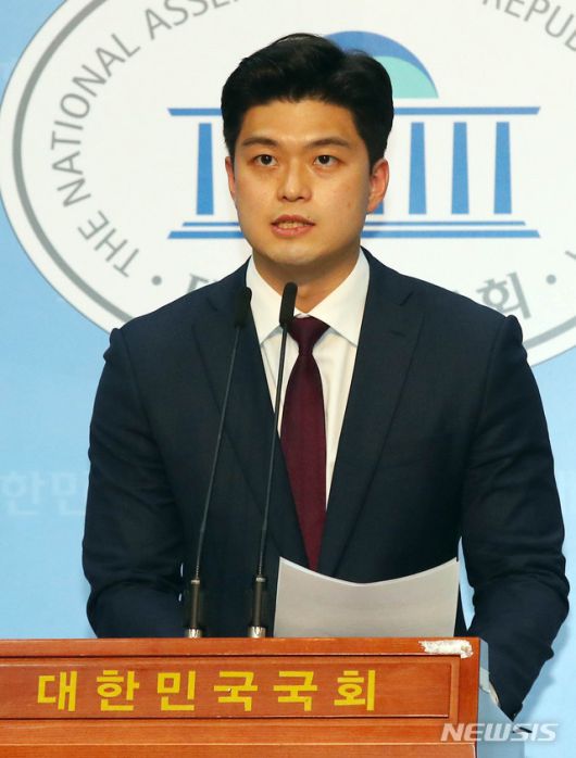 [서울=뉴시스] 장세영 기자 = 전 새로운보수당 청년대표 출신 김용태 미래통합당 예비후보가 25일 서울 여의도 국회 소통관에서 기자회견을 열고 4.15총선 경기 광명을에 출마를 선언하고 있다. 2020.03.25. photothink@newsis.com |