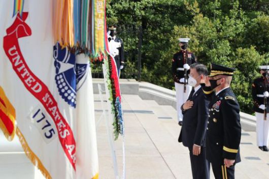 문 대통령은 헌화 행사에 참석한 미측 인사들을 만나 "한국전쟁 당시 대한민국의 자유와 민주주의 수호를 위해 싸운 미군들에게 경의를 표한다"고 말하고, "바이든 대통령과 함께 한미동맹을 더욱 강력하고 포괄적으로 발전시켜 나갈 것"이라고 밝혔다고 청와대가 전했다.