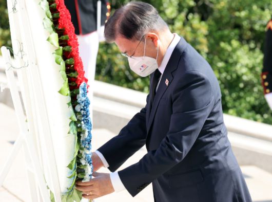 역대 미국 대통령들이 취임 후 가장 먼저 참배하는 곳이며, 문 대통령이 이곳을 찾은 것은 취임 후 처음이다.