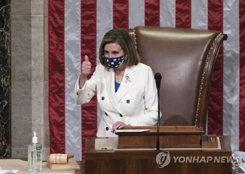 초대형 경기부양안 통과에 '엄지 척'하는 미 하원의장 |