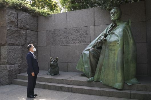 청와대는 문 대통령이 코로나19 위기 극복과 한국판 뉴딜 정책 의지를 표명하기 위해 루스벨트 기념관을 찾았다고 했다. 루스벨트 전 대통령의 손자인 델 루스벨트 미-사우디 비즈니스 협회장이 직접 문 대통령을 안내했다.