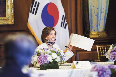 펠로시 의장은 간담회에서 문 대통령이 보낸 신년카드도 꺼내보이며 “아주 예뻐서 간직하고 있다”며 “그 안의 내용에 인류의 평화와 번영을 위해 쉬지 않고 노력한다는 글도 감동적이었다”고 말했다. 워싱턴공동취재단·서울=문재연 기자