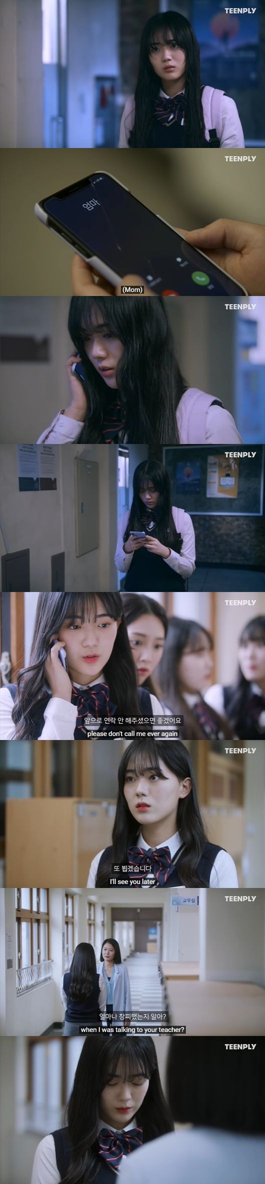 차에 탄 엄마는 "너 모의유엔 안 하고 거짓말 했니? 엄마 몰래 화장품도 샀니?"라며 "어디 말 대답이야? 네가 다른 애들하고 같아? 어디 학생 답지 못하게! 학교에서 이러고 다니는 거 아빠가 알면 어쩌려고 그러니? 여자 애가 행실을 똑바로 해야지. 지금까지 잘해오다가 왜 이러는 거냐?"며 화를 냈다.