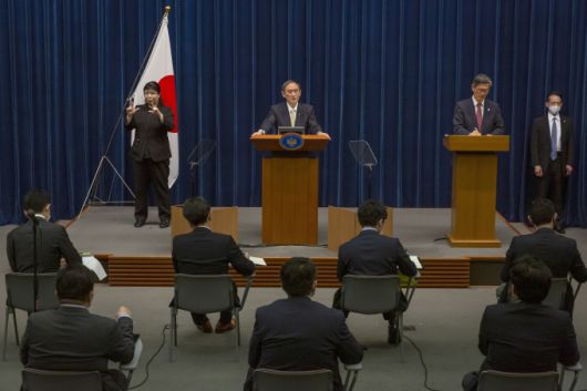[쿠키뉴스] 조현지 기자 =일본이 코로나바이러스감염증-19(코로나19)로 인한 긴급사태 확정을 결정했다. 그러나 스가 요시히데 일본 총리는 도쿄 올림픽·패럴림픽 개최 의사를 굽히지 않았다.