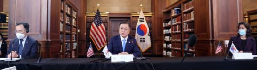 문 대통령은 이날 오전 미국 워싱턴DC에 있는 상무부에서 열린 '한미 비즈니스 라운드 테이블' 행사에서 한국기업의 대미 투자계획을 언급한 뒤 "한국 기업들은 세계 2위의 바이오의약품 생산 능력을 갖추고 있다"며 이같이 표현했다. 앞서 이날 지나 레이몬도 미국 상무부 장관도 인사말에서 "미국의 제조업체들도 한국에서 바이든 행정부와 함께 일하면서 백신을 한국에 전달하고자 노력하고 있다"고 말하며 백신을 거론했다.