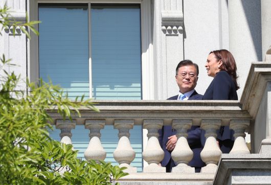 문 대통령은 이날 오전 백악관 아이젠하워 행사실에서 해리스 부통령을 접견했다. 문 대통령은 "미국의 정신은 지난 70년 자유와 민주주의를 위해 함께 피 흘리며 싸운 한미동맹의 역사에도 고스란히 배어 있다"고 했다. 또 "미국의 강력한 기후변화 대응을 지지하며, 한반도의 완전한 비핵화와 항구적 평화를 위해서도 빈틈없이 공조할 것"이라고 했다.