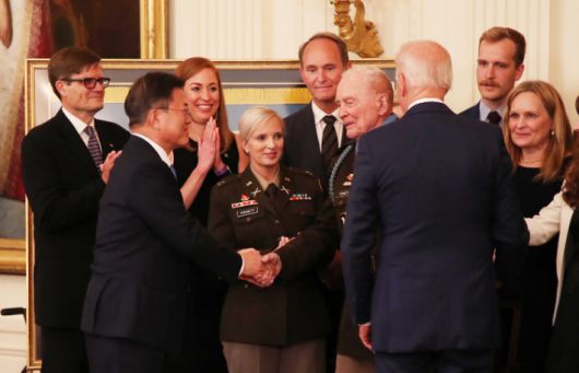 이날 명예훈장 수여식은 한미정상회담에 앞서 한미동맹의 중요성을 강조하기 위한 백악관의 기획으로 보인다.