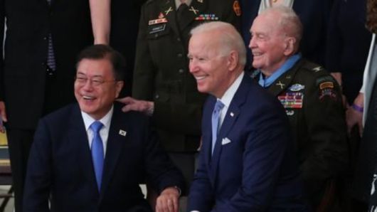 문재인 대통령은 21일 조 바이든 미국 대통령과의 확대정상회의에서 "한반도의 완전한 비핵화와 평화 정착을 위해 한국은 미국과 함께 긴밀히 협력해 나갈 것"이라고 밝혔다.