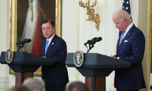 문 대통령에 앞서 바이든 대통령은 기자회견에서 “북한을 외교적으로 참여시키겠다고 이야기했다”며 “긴장을 완화시키면서 우리가 모두 목표로 하는 한반도 비핵화를 향해서 다가가기로 했다”고 밝혔다. 이어 “한국을 항상 대북 문제, 대북 전략과 접근에 긴밀하게 참여하도록 할 것”이라고 설명했다.