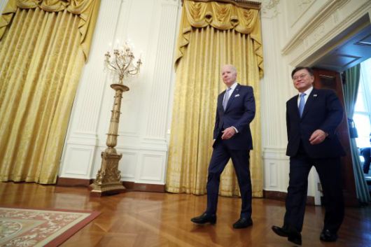 바이든 대통령은 또 "지난 4번의 행정부를 통해서 어려운 문제에 대해 목표 달성을 못했지만 앞으로 동맹국과 긴밀히 공조할 것"이라며 "문제는 한반도 비핵화이고 앞으로도 그럴 것"이라고 했다.