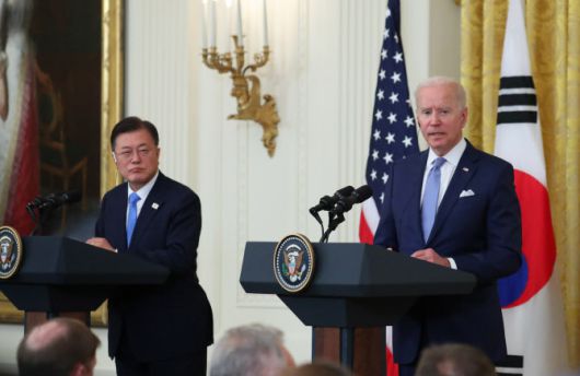 문재인 대통령과 조 바이든 미국 대통령이 21일 오후(현지시간) 백악관에서 정상회담 후 공동기자회견을 하고 있다.(사진=연합뉴스) |