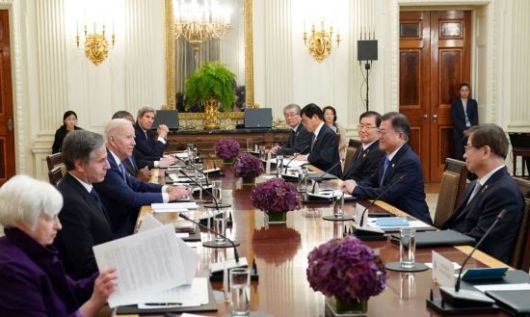 바이든 대통령은 "대면 회담을 갖는 두 번째 외국 정상으로서 문 대통령을 환영하게 된 것을 반갑게 생각한다"며 "앞서 열린 회의 시간이 초과되었다고 여러 차례 보고가 있었으나 미팅 내용이 유익해서 회의 시간을 늘려 진행했다"고 말했다.