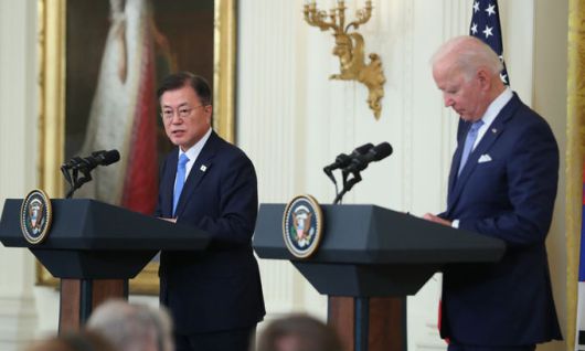 문 대통령은 이날 미 백악관에서 열린 조 바이든 미국 대통령과의 첫 정상회담 직후 공동 기자회견에서 “바이든 대통령과 저는 남북간, 북미간 약속을 기초한 대화가 평화로운 한반도를 만드는 데 필수적이라는 믿음을 확인했다”며 이같이 말했다.