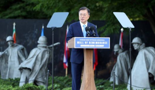 미국을 공식 방문 중인 문재인 대통령이 21일(현지시간) 오후 워싱턴DC에 있는 '한국전 전사자 추모의 벽'에서 열린 착공식에 참석, 전사자들을 기리며 이같이 말했다.