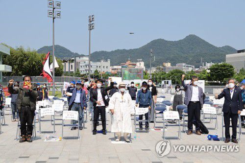 (광주=연합뉴스) 천정인 기자 = 5·18 민중항쟁기념행사위원회는 22일 광주 동구 5·18 민주광장에서 제41주년 5·18 민주화운동을 기념해 국민대회를 개최했다.