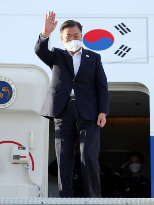 21일 오전 백악관에서 카멀라 해리스 미국 부통령을 면담한 뒤 오후 바이든 대통령과 정상회담을 진행했다. 바이든 대통령과 한반도 비핵화를 비롯해 백신 및 경제협력, 기후변화 등에 대해 논의했다.