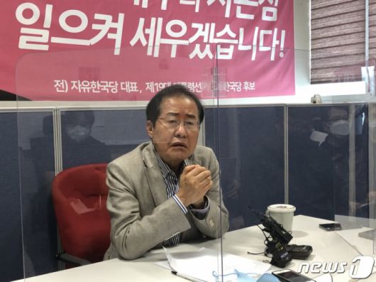 (대구=뉴스1) 남승렬 기자 = 무소속 홍준표 의원(대구 수성을)이 14일 대구 수성구 지역구 사무실에서 기자간담회를 열고 자신의 복당과 관련된 의견을 밝히고 있다. 그의 복당을 둘러싸고 국민의힘 안팎에서 논쟁이 이는 가운데 홍 의원은 |