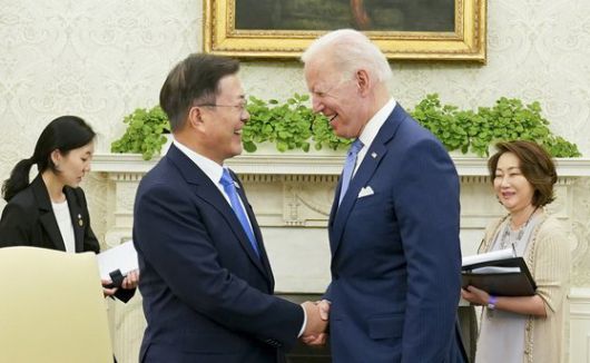 문 대통령이 만족감을 표시한 이번 회담의 공동성명서는 “한ㆍ미 동맹의 새로운 장을 열며”라는 소제목으로 시작한다. 외교가에선 이를 “문 대통령이 지난 4년간 유지해왔던 한ㆍ미 동맹 관계의 재정립에 동의했다”는 취지로 해석하는 목소리가 많다. 미ㆍ중 사이의 갈등 국면에서 ‘줄타기’에 가까운 전략적 모호성을 보여왔던 정부가 무게 중심을 미국쪽으로 이동시켰다는 뜻이다.