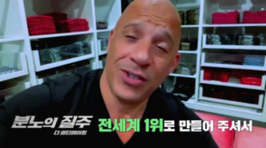 먼저 배우 빈 디젤은 "여러분들께 감사 인사를 전하고 싶습니다. '분노의 질주'를 전 세계 1위로 만들어 주셔서 가슴 깊이 감사드립니다"라고 말했다.