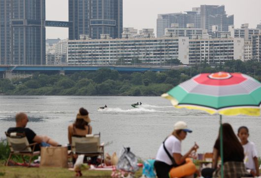 지난 23일 오후 반포 한강공원을 찾은 시민들이 강가에서 휴식을 즐기는 모습. [연합] |