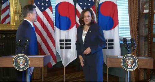 이에 미국에서는 현 미국 정부에 비판적인 보수 성향의 폭스 뉴스가 '해리스가 한국 대통령과 인사 후 손을 닦았고 트위터에서 반발에 직면했다'라고 보도했다.