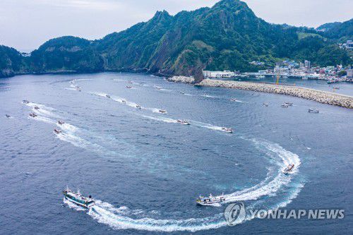 해상시위에 나선 울릉 어민 |
