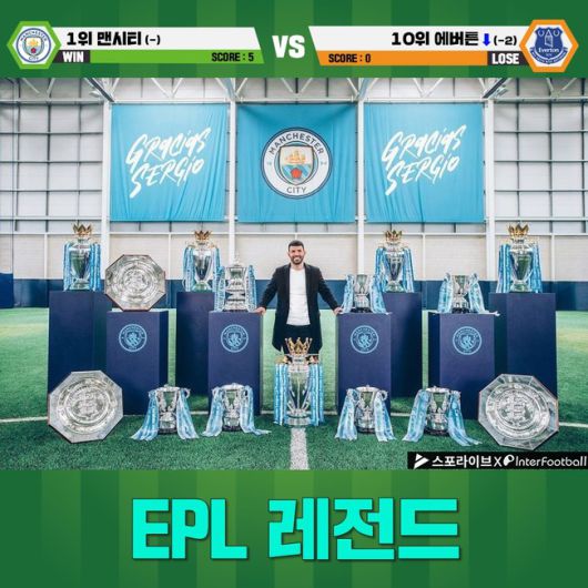 우승이 확정됐기에 맨시티는 어떤 결과가 나와도 상관없었지만 최선을 다할 수밖에 없었다. 에버턴전이 레전드 아구에로의 EPL 마지막 경기였기 때문이다. 아구에로는 2011-12시즌부터 맨시티 소속으로 활약했으며, 데뷔 시즌부터 역사에 남을 만한 결승골로 맨시티에 리그 우승 트로피를 선물했다. 이후에도 아구에로의 활약은 멈추지 않았고, 맨시티를 넘어 EPL 레전드로 자리매김한다.