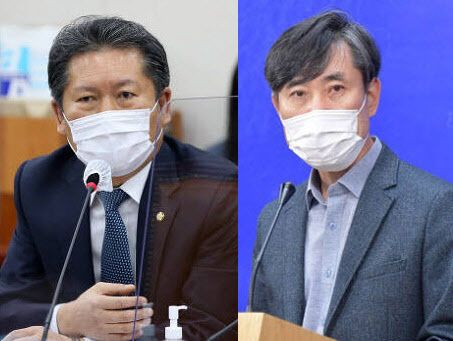 (왼쪽부터) 정청래 더불어민주당 의원, 하태경 국민의힘 의원 (사진=연합뉴스, 노진환 이데일리 기자) |