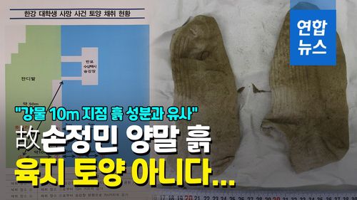 (서울=연합뉴스) 한강에서 실종된 뒤 숨진 채 발견된 의대생 고(故) 손정민씨의 양말에서 발견된 토양 성분은 육지에서 강물 속으로 약 10m 떨어진 지점에서 채취한 흙 성분과 유사한 것으로 드러났습니다.