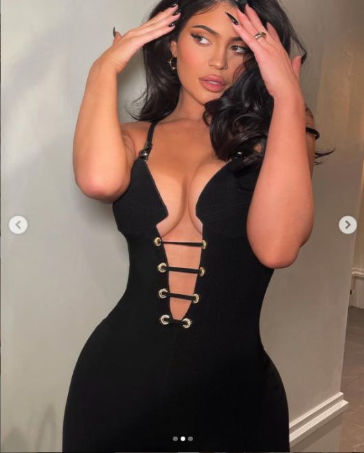 사진 속 카일리 제너는 배꼽까지 깊게 파여 가슴선이 드러나는 아찔한 커팅 슈트를 착용한 모습이다.