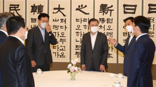 문 대통령은 이날 청와대에 여야 5당 대표 초청 오찬회를 가진 자리에서 "한미간 한반도 평화프로세스를 진전시킬 수 있는 확고한 공감대 마련됐다"며 이같이 말했다. 이날 오찬회에는 송영길 더불어민주당 대표, 김기현 국민의힘 당대표 권한대행 겸 원내대표, 여영국 정의당 대표, 안철수 국민의당 대표, 최강욱 열린민주당 대표 등 여야 5당 대표와 각 당 대변인들이 참석했다.