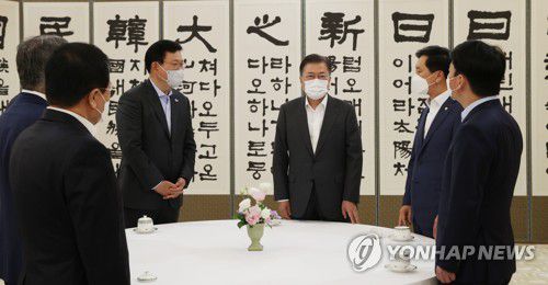 문 대통령, 여야 대표와 환담 |
