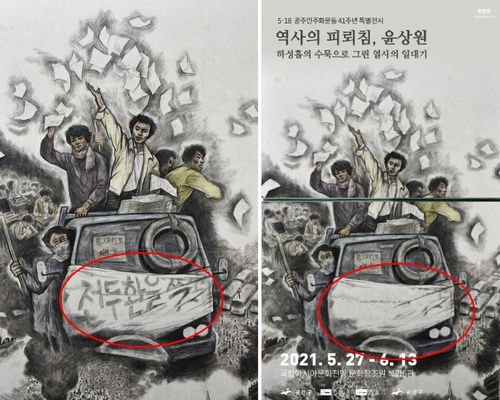 또 "아시아문화원은 이번 사건에 대해 명명백백하게 진실을 밝히고 작가뿐만 아니라 5·18 관계자와 지역 예술인, 광주시민에게 정중하게 사과해야 한다"며 "직접 책임이 있는 직원에겐 상응하는 엄중한 책임을 묻고 (다른) 직원들도 성찰해야 한다"고 요구했다.