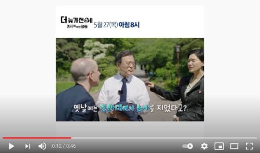 다른 특별영상인 '더 늦기 전에 지구를 위한 행동, 실천'편은 지난 26 청와대 유튜브 및 P4G 서울 정상회의 누리집, KTV 등 정부 온라인 채널을 통해 공개됐다.