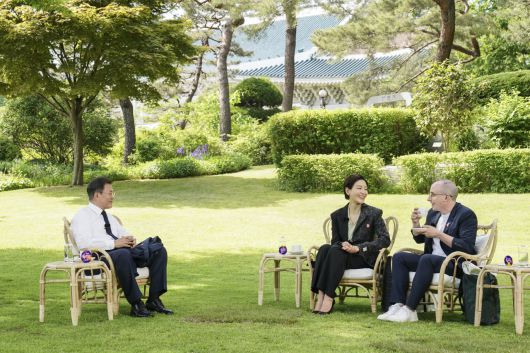 문 대통령은 박진희와 타일러에게 직접 수확한 보리로 만든 차를 권하기도 했다.