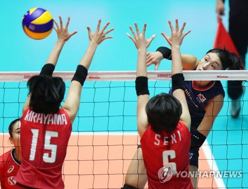 (서울=연합뉴스) 하남직 기자 = 세계적인 레프트 김연경(중국 상하이)도 일본의 촘촘한 그물망 수비를 뚫지 못했다.